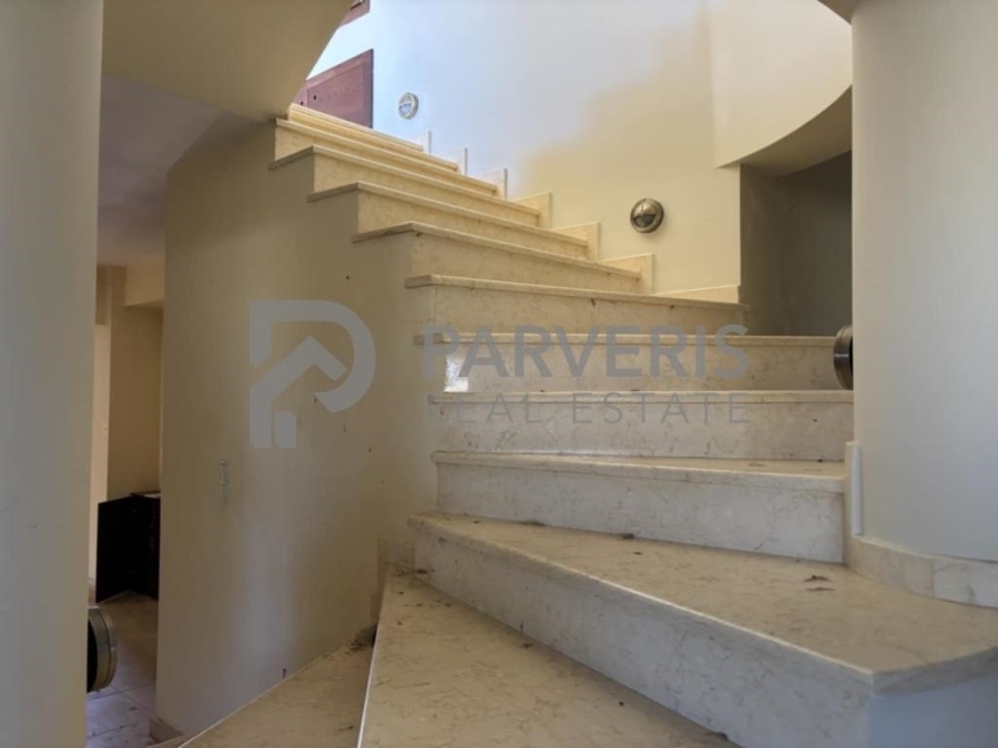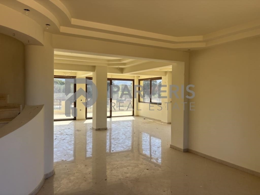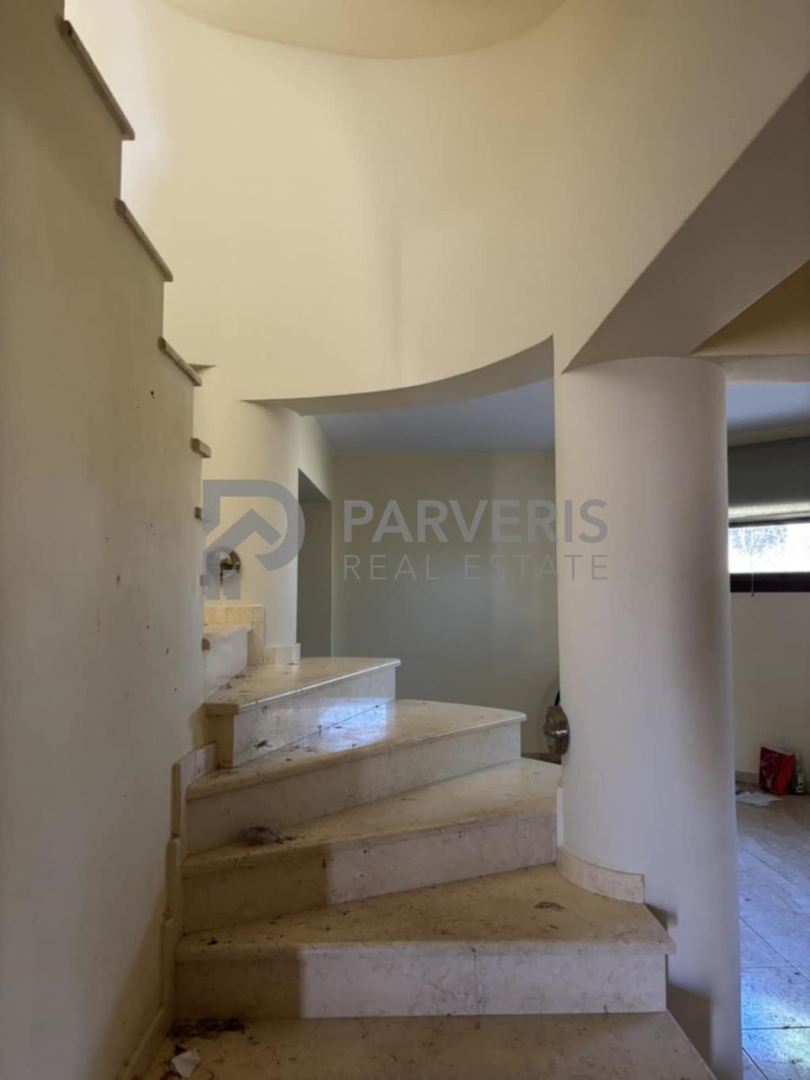 Το διώροφο κτίριο αποτελείται από: •Υπόγειο χώρο με χρήση κατοικίας επιφάνειας 158,56 τ.μ. που περιλαμβάνει 3 υ/δ, καθιστικό, αποθήκη και λουτρό και κλίμακα προς το ισόγειο,•Υπόγειο κλειστό χώρο στάθμευσης αυτοκινήτου επιφάνειας 25.00 τ.μ.,•ισόγειο όροφο με χρήσης κατοικίας επιφάνειας 163,40 τ.μ. που περιλαμβάνει 2 καθιστικά, κουζίνα και WC•Α’ όροφο με χρήση κατοικίας επιφάνειας 109,23 τ.μ. που αποτελείται από 4 υ/δ, 2 λουτρά και 3 βεράντες. Στο περιβάλλοντα χώρο υπάρχει υπαίθρια πισίνα επιφάνειας 76,80 τ.μ. και όγκου 116 κ.μ., μηχανοστάσιο επιφάνειας 21,25 τ.μ., δεξαμενή νερού επιφάνειας 14,95 τ.μ. και μια ισόγεια κατοικία πλησίον πισίνας επιφάνειας 41.18 τ.μ.