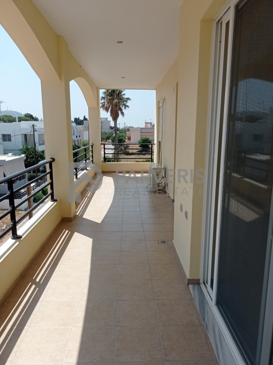 Εσωτερικά αποτελείται από δύο άνετα υπνοδωμάτια με δυνατότητα διαμόρφωσης σε τρίτο, μπάνιο, κουζίνα, σαλόνι και τραπεζαρία, καθώς και μεγάλη βεράντα. Επιπλέον διαθέτει ξεχωριστό χώρο πλυντηρίου–στεγνωτηρίου και σιδερώματος (πλυσταριό). Είναι εξοπλισμένο με διπλά τζάμια, σήτες, κλιματισμό στα υπνοδωμάτια, τζάκι, αυτόνομη θέρμανση πετρελαίου και ηλιακό θερμοσίφωνα τριπλής ενέργειας. Στην ιδιοκτησία περιλαμβάνεται επίσης βοηθητικός χώρος/γκαράζ στο ισόγειο, επιφάνειας 30 τ.μ. Πρόκειται για μια εξαιρετική επιλογή, ιδανική τόσο για μόνιμη κατοικία όσο και για εξοχική ή επενδυτική χρήση.