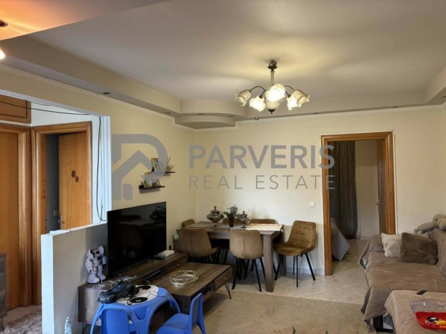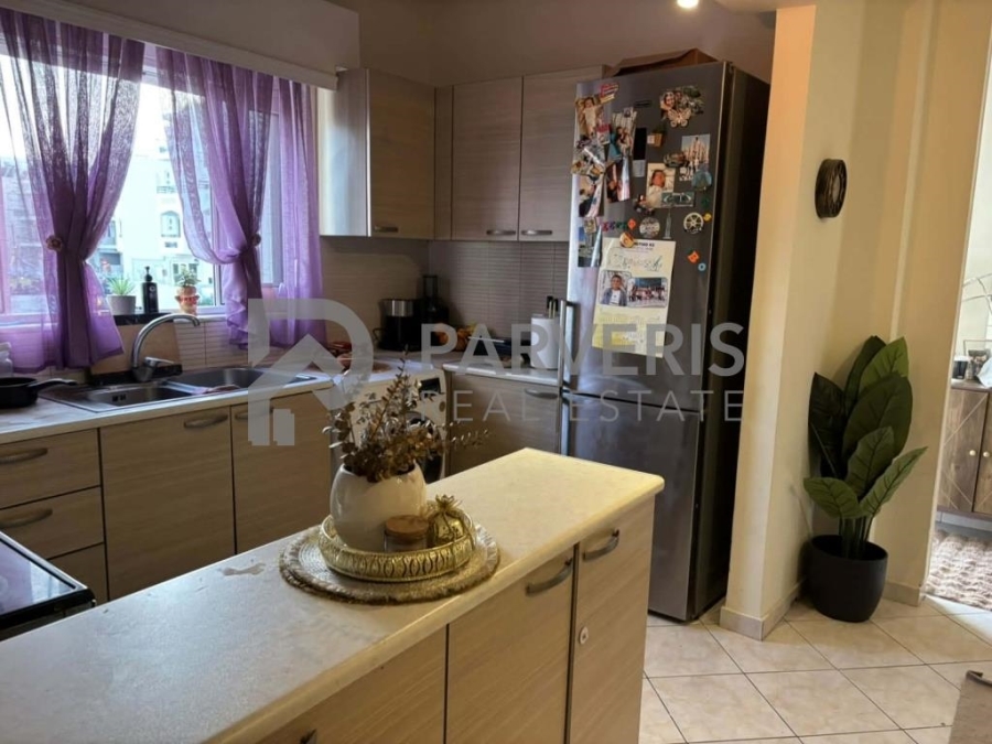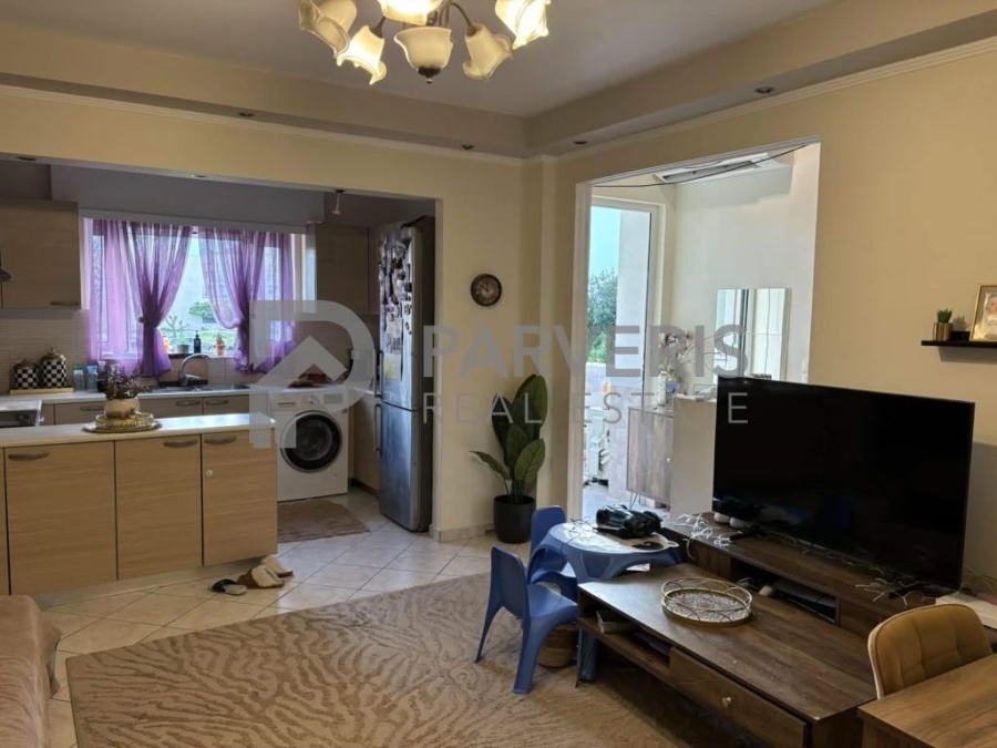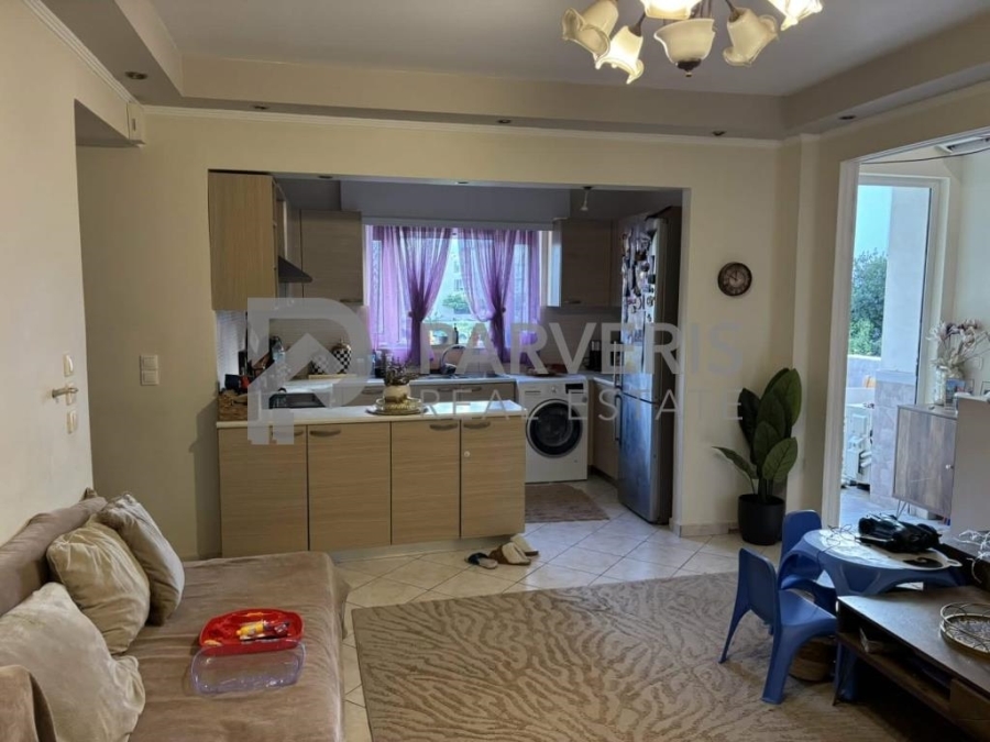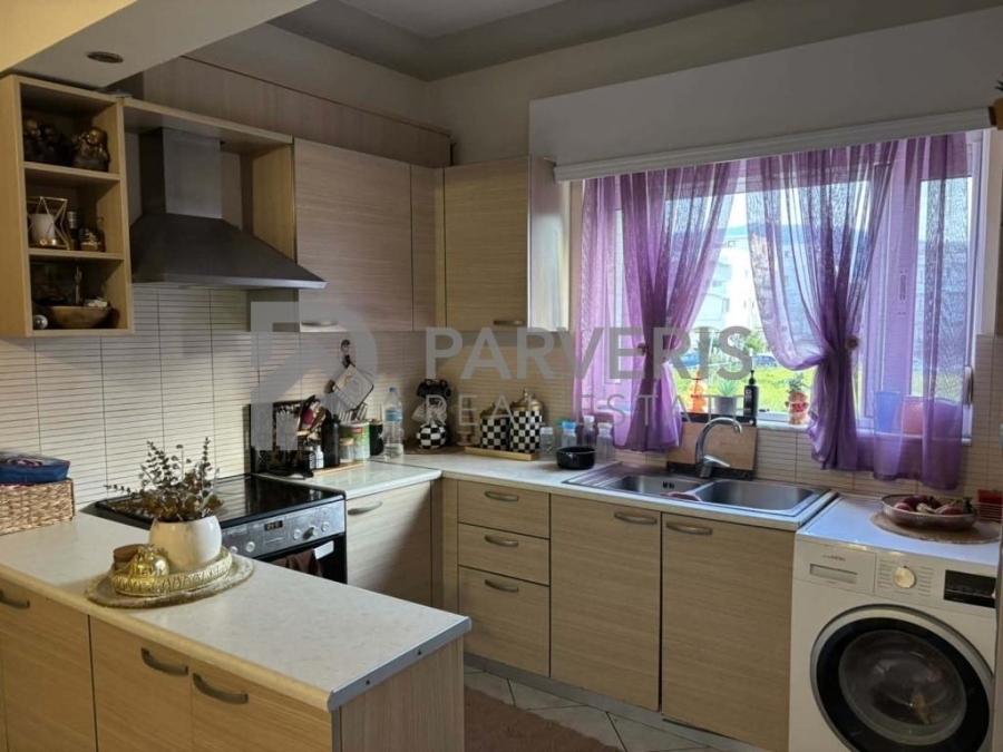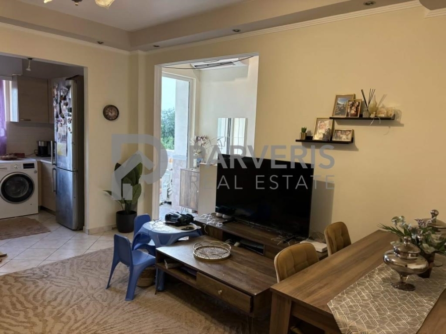 Το διαμέρισμα (65 τ.μ.) διαθέτει: 2 υ/δ, σαλονοκουζίνα, μπάνιο, εγκαταστάσεις για κεντρική θέρμανση, ηλιακό θερμοσίφωνα και μπαλκόνια εμπρός και πίσω με όμορφη θέα σε θάλασσα και βουνό.
