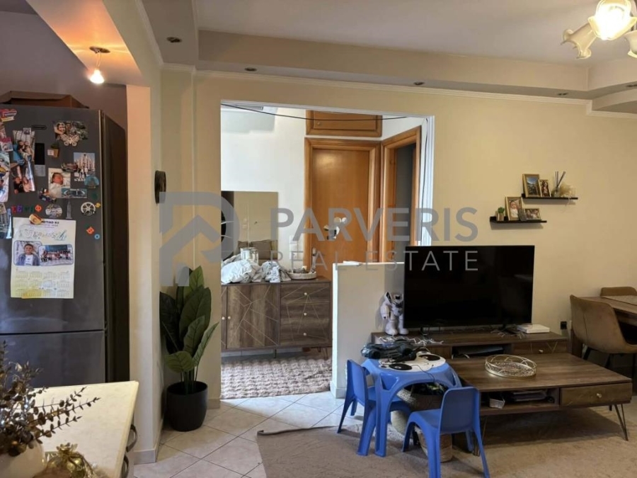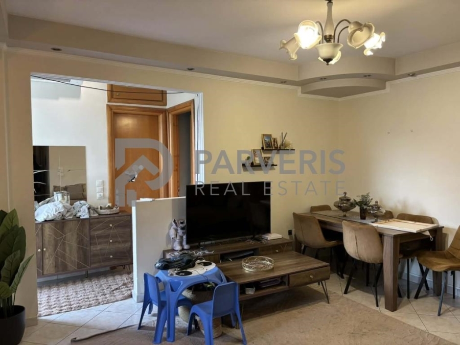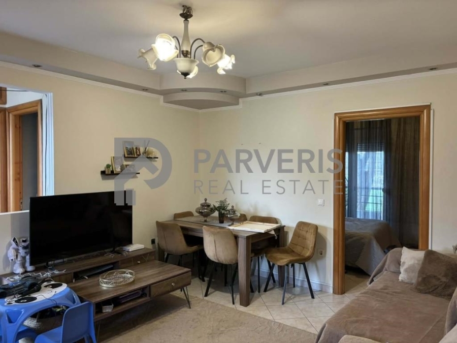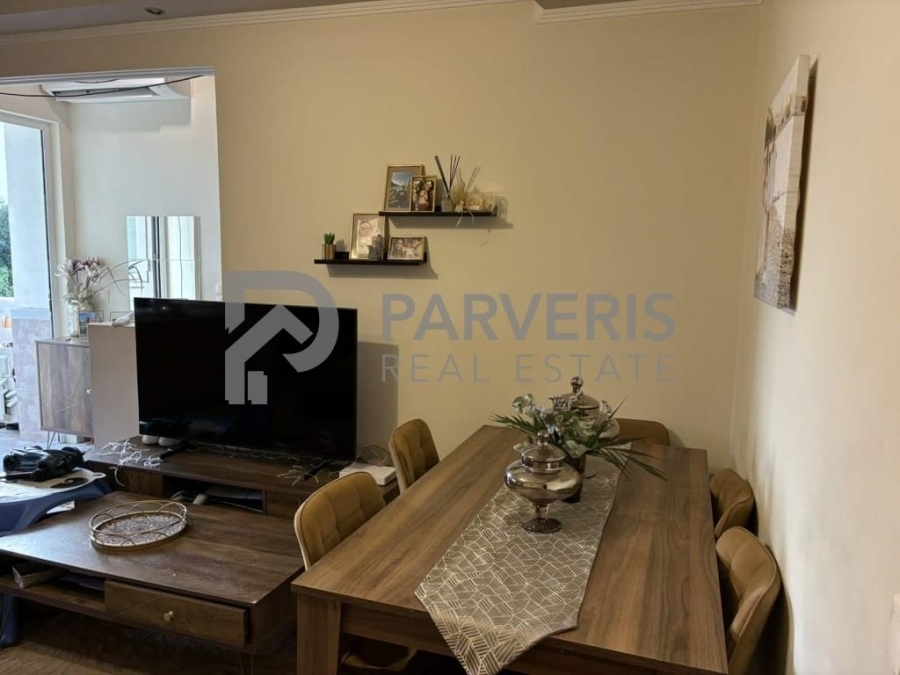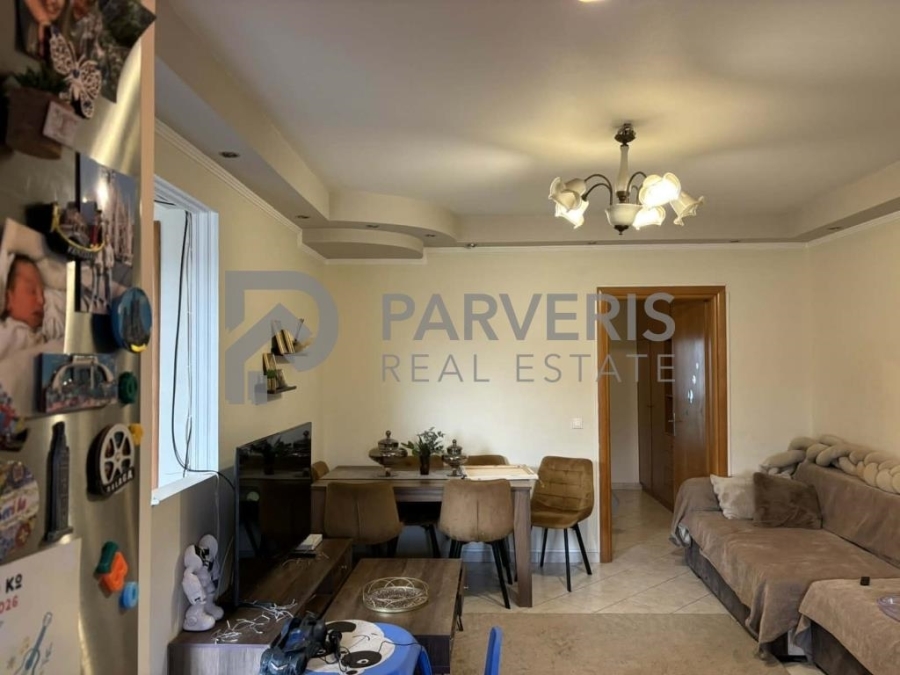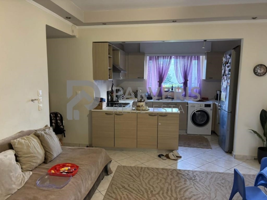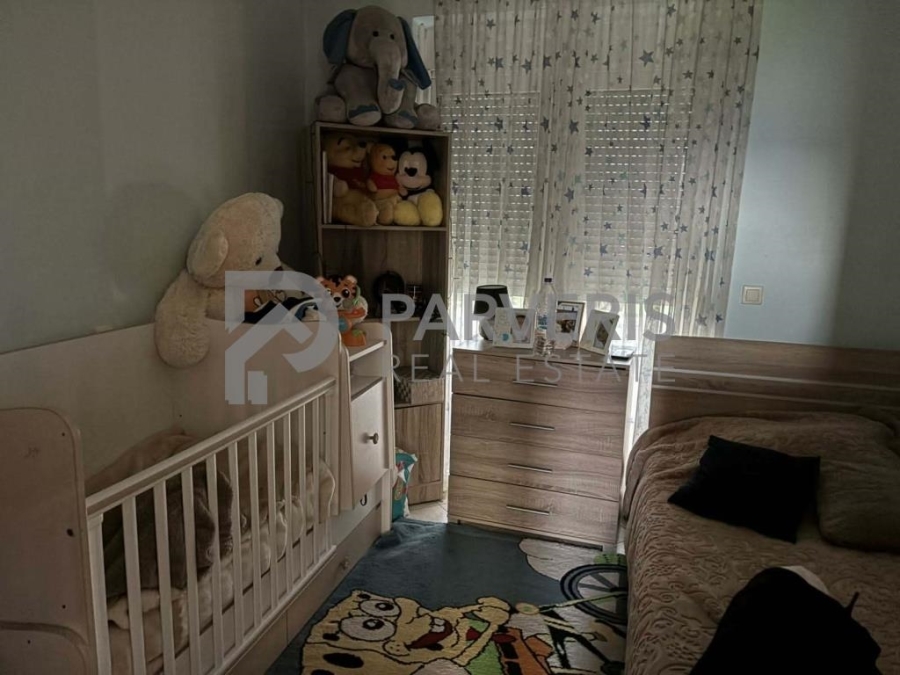 Το διαμέρισμα (65 τ.μ.) διαθέτει: 2 υ/δ, σαλονοκουζίνα, μπάνιο, εγκαταστάσεις για κεντρική θέρμανση, ηλιακό θερμοσίφωνα και μπαλκόνια εμπρός και πίσω με όμορφη θέα σε θάλασσα και βουνό.