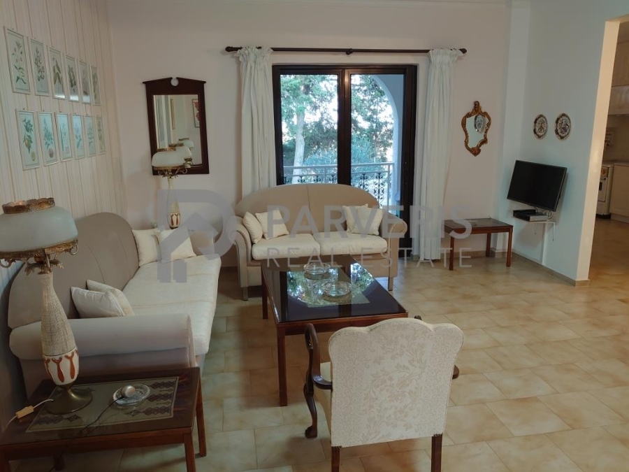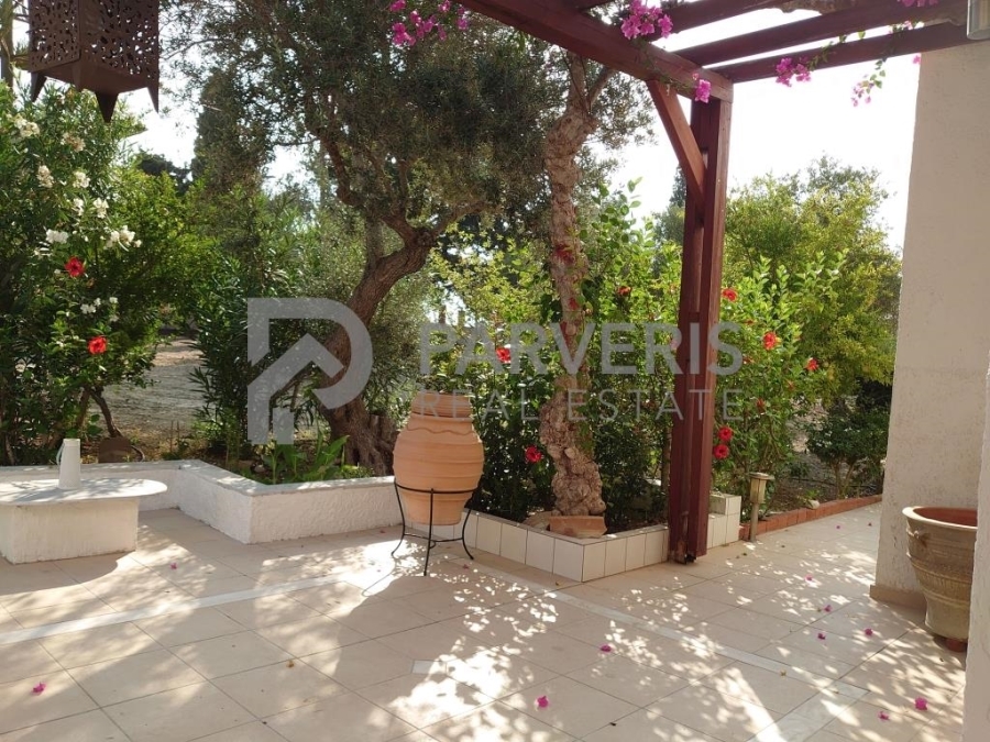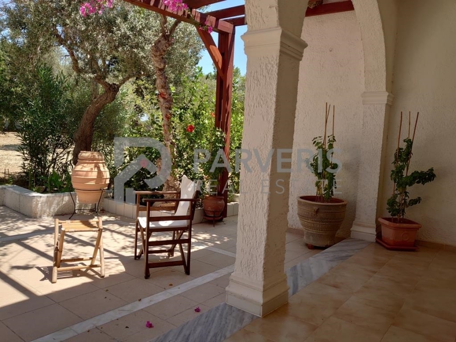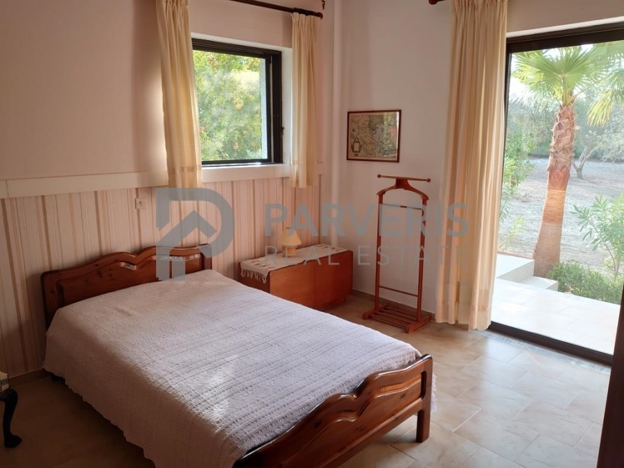 Η κατοικία, κατασκευής 1988 και σε πολύ καλή κατάσταση, αναπτύσσεται σε ένα επίπεδο και διαθέτει 5 υπνοδωμάτια, άνετο σαλόνι, κουζίνα και 2 μπάνια, προσφέροντας ιδανικούς χώρους τόσο για μόνιμη όσο και για εξοχική κατοικία. Είναι φωτεινή, διαμπερής, πλήρως επιπλωμένη και εξοπλισμένη με κλιματισμό, ηλιακό θερμοσίφωνα, σίτες και αποθηκευτικούς χώρους.