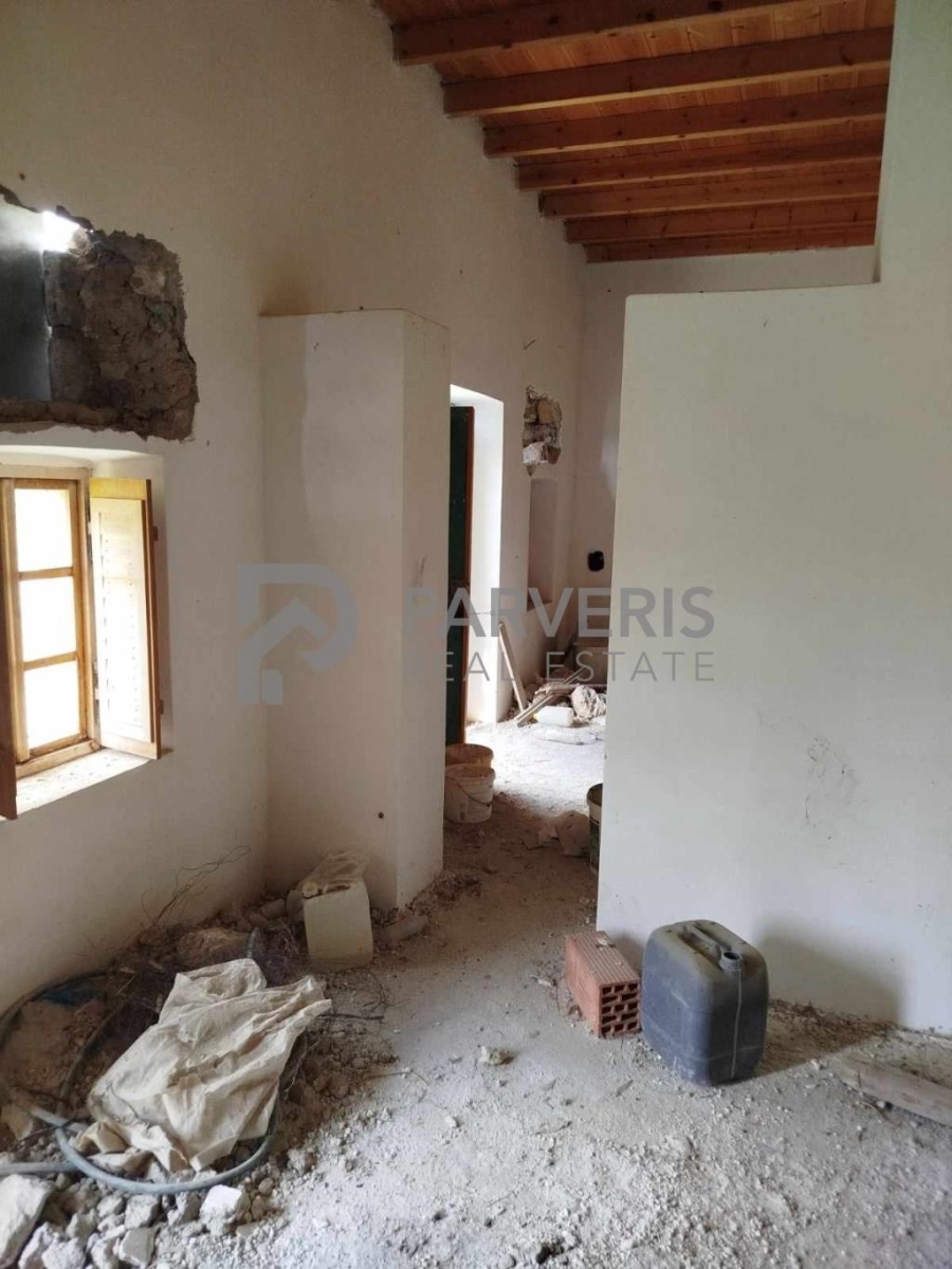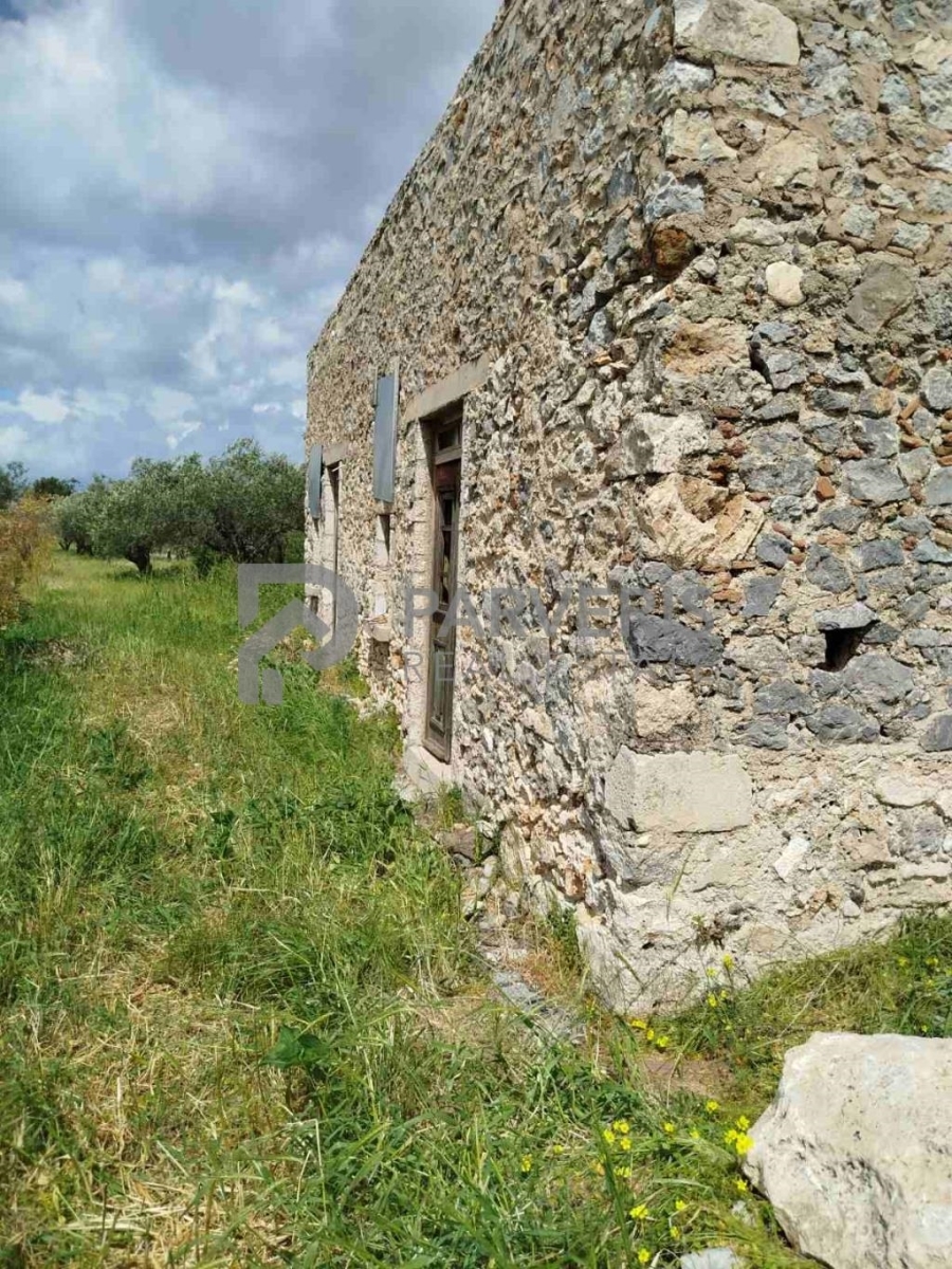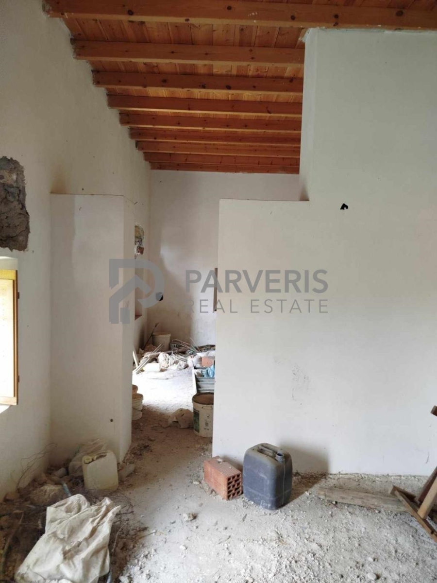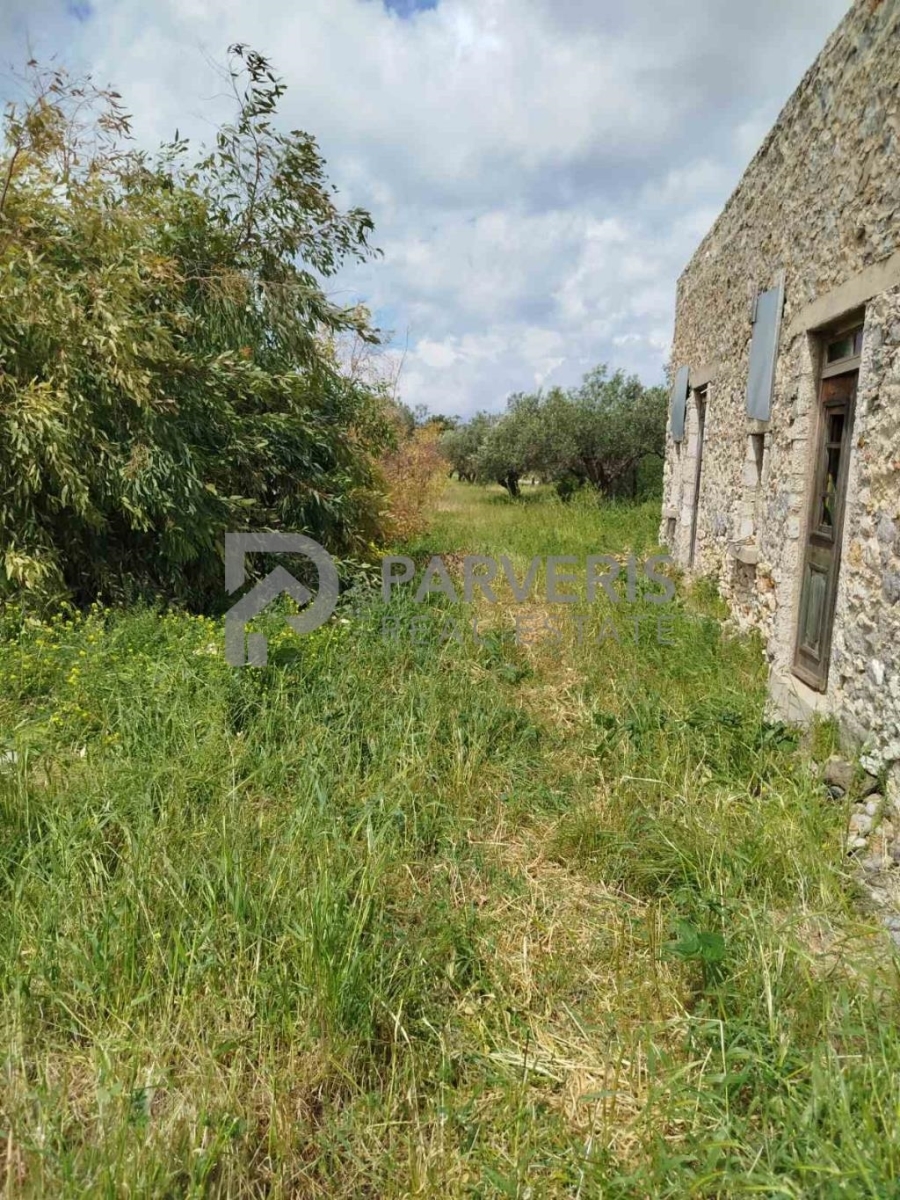 Traditional stone-built detached house for sale in Pyli. It has an area of 130 sq m and is built on a plot of land of 4,120 sq m planted with olive trees. It needs partial renovation.
